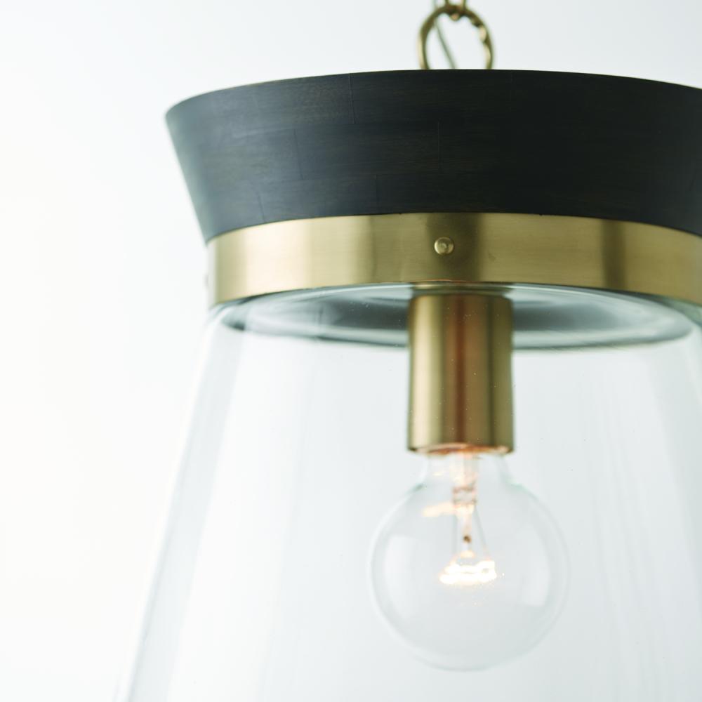 12"W x 14"H 1-Light Pendant in Black Stain Wood and Matte Brass with Clear Glass