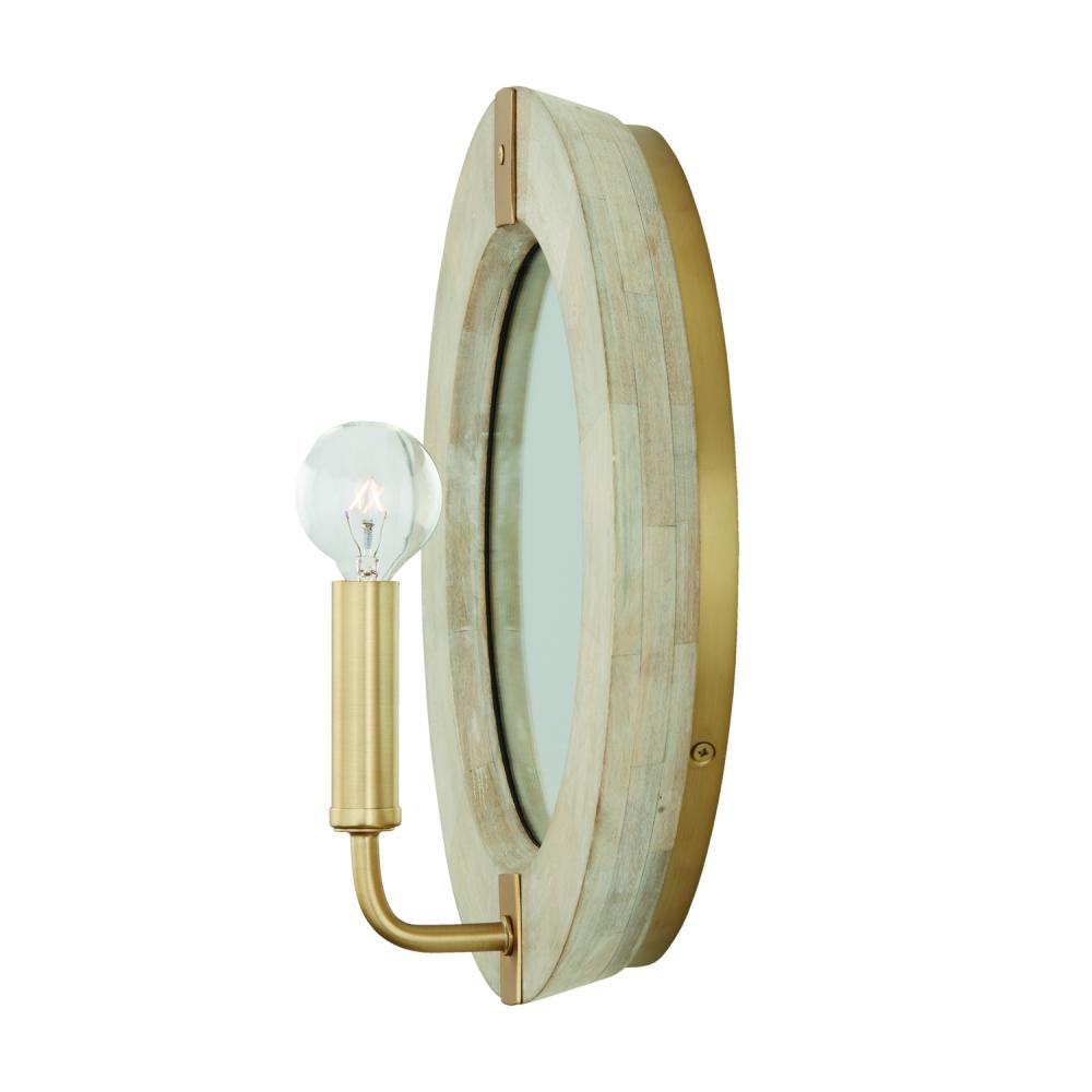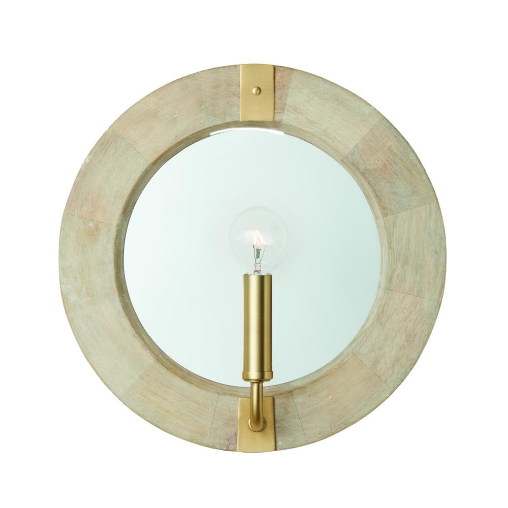 12"W x 12"H 1-Light Sconce in White Wash Wood and Matte Brass with Mirrored Backplate