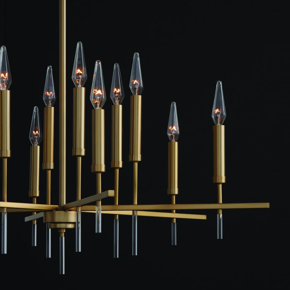 35"W x 25"H 12-Light Chandelier in Matte Brass with Acrylic Finial Accents