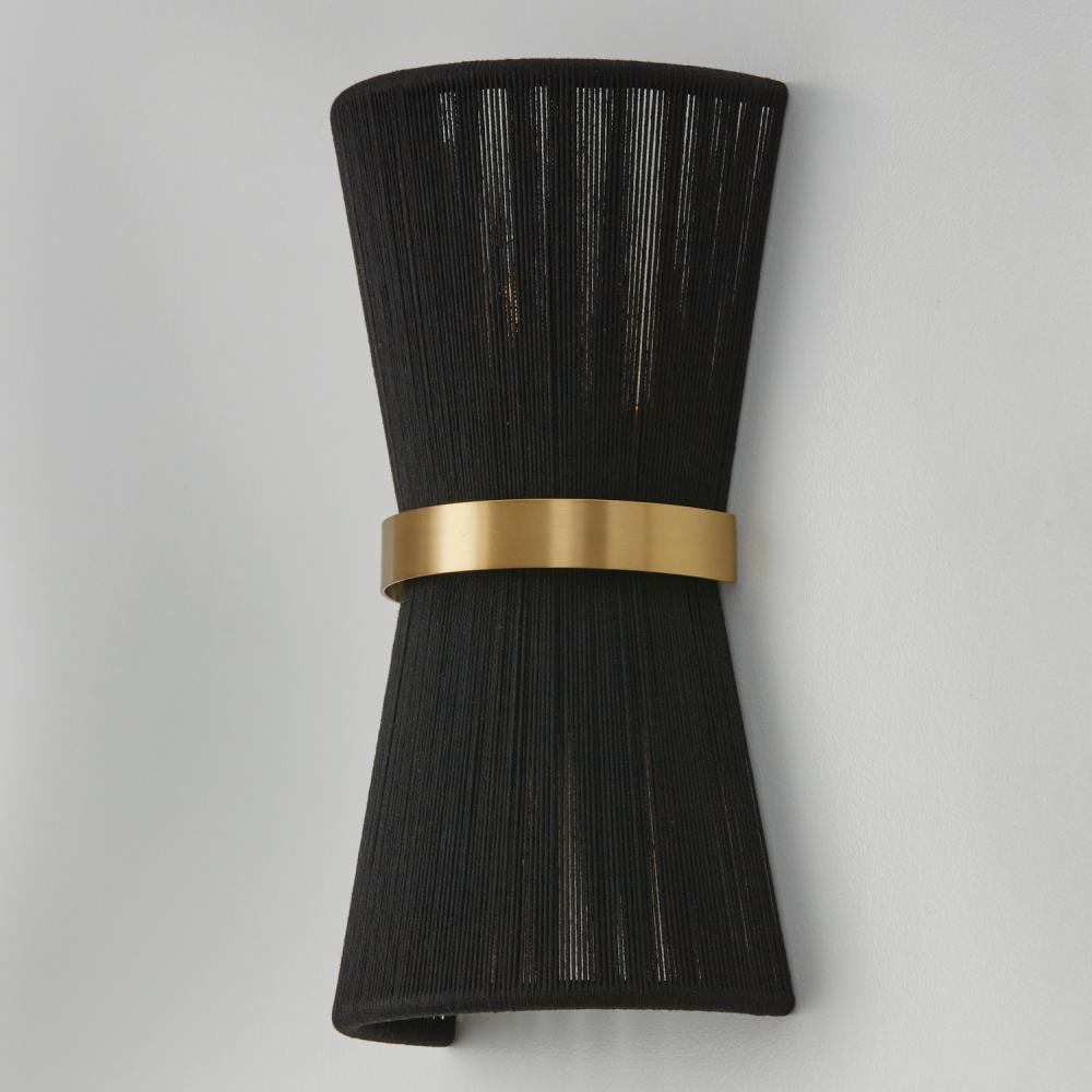 Invite contrast, drama, and glamour with the Cecilia Sconce. Sitting flush against the wall, the hourglass silhouette is hand-wrapped in Black Rope creating artisan texture, while the slightly distressed Patinaed Brass adds dimension.