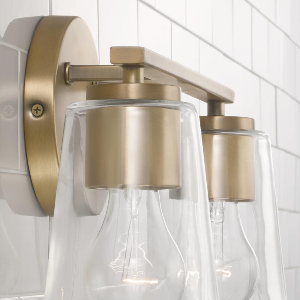 14.5"W x 8.25"H 2-Light Vanity in Aged Brass with Clear Glass