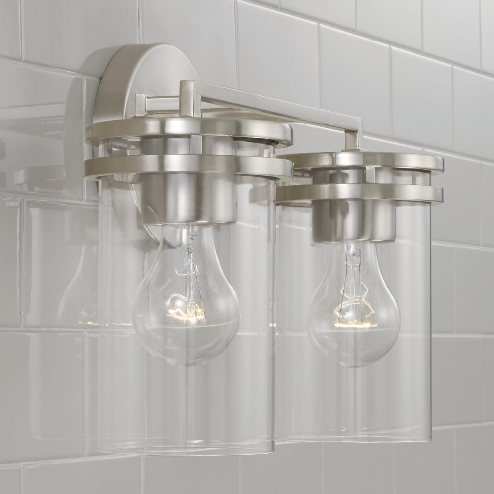 14.25"W x 9.75"H 2-Light Vanity in Brushed Nickel with Clear Glass