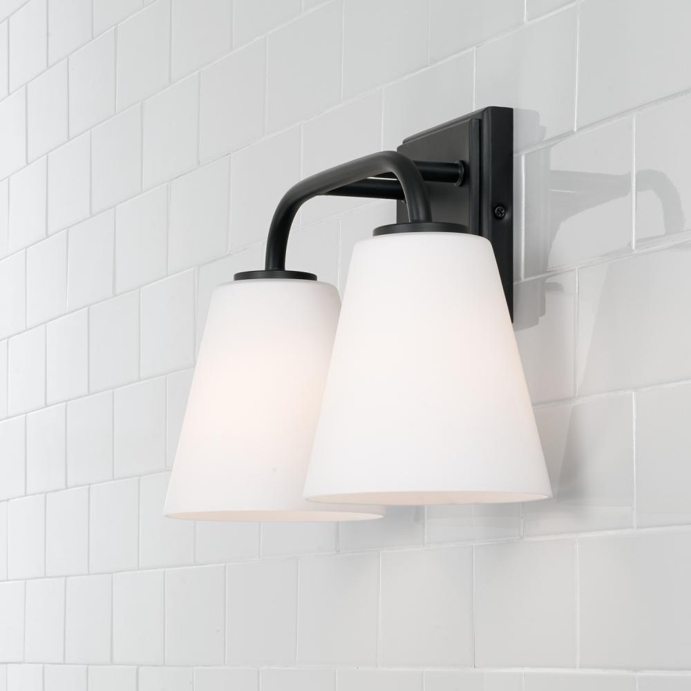 14.5"W x 9"H 2-Light Vanity in Matte Black with Soft White Glass