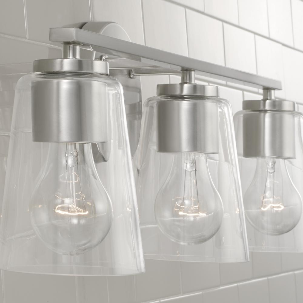 25"W x 8.25"H 3-Light Vanity in Brushed Nickel with Clear Glass