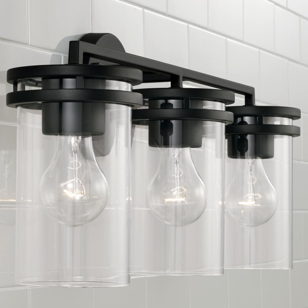24"W x 9.75"H 3-Light Vanity in Matte Black with Clear Glass