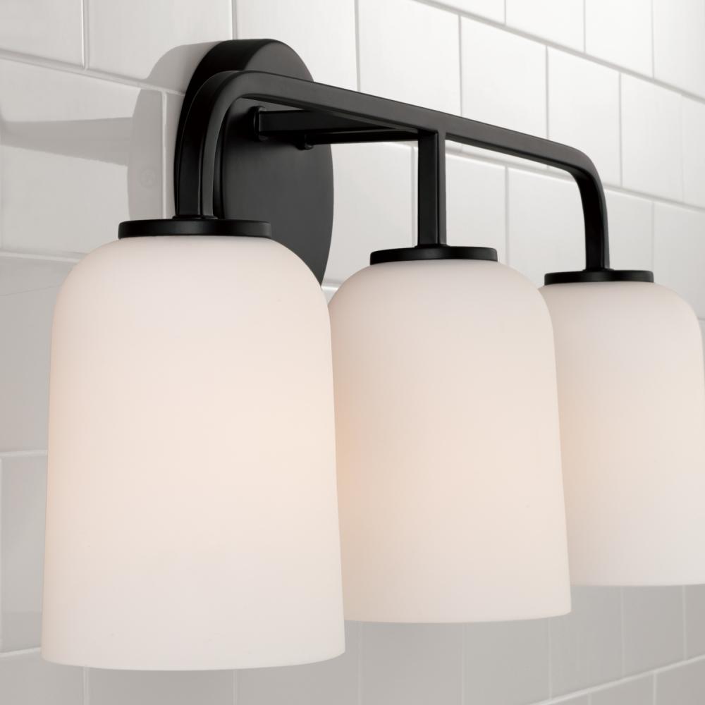 23.5"W x 9.75"H 3-Light Vanity in Matte Black with Soft White Glass