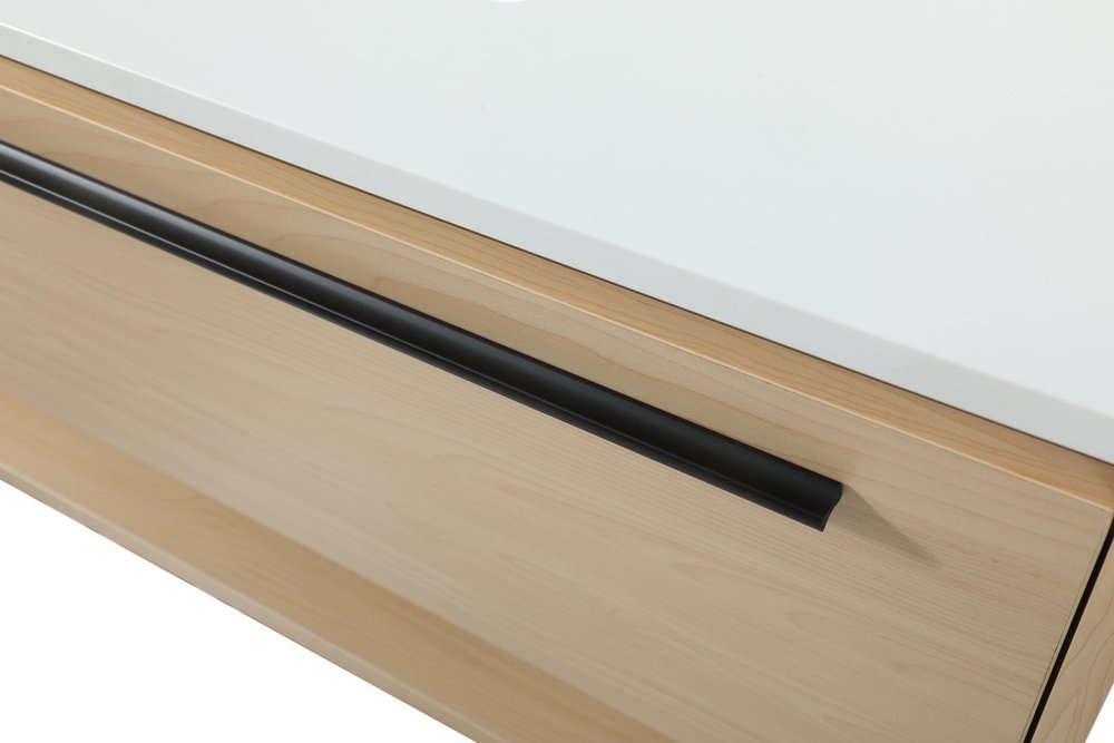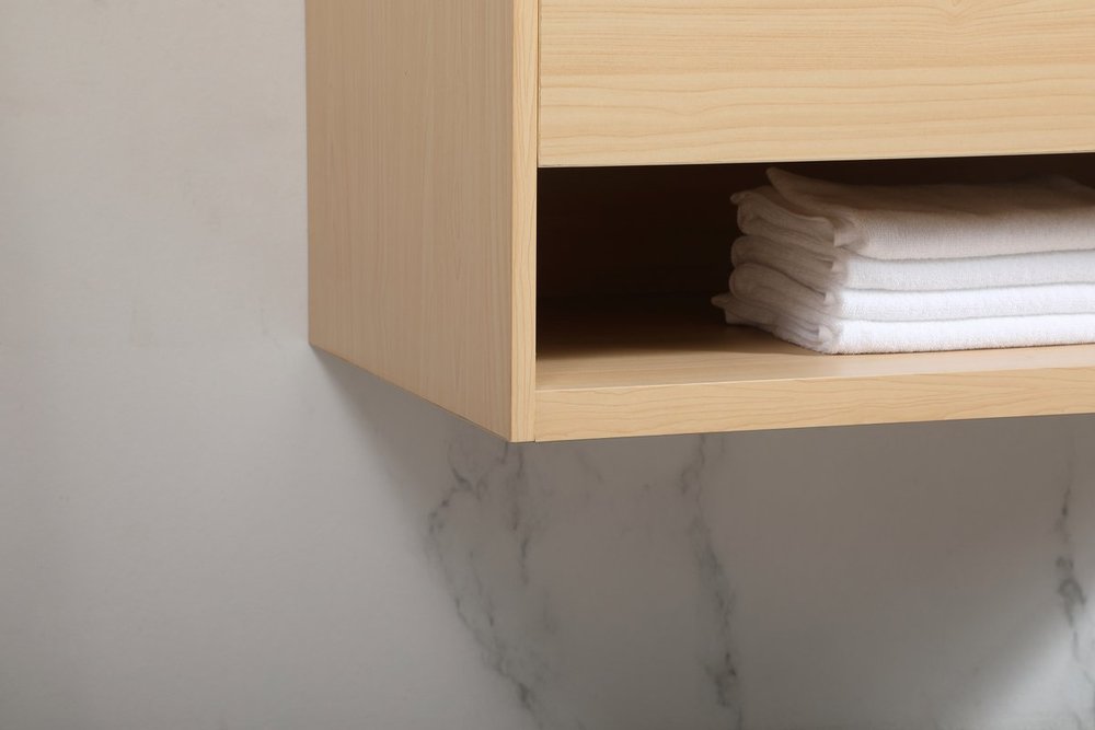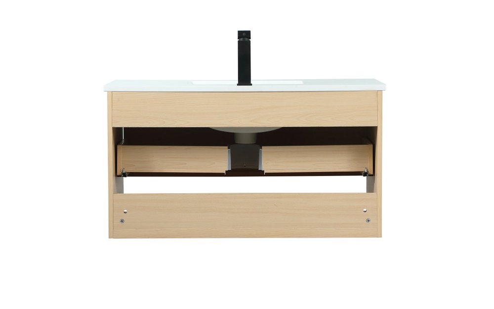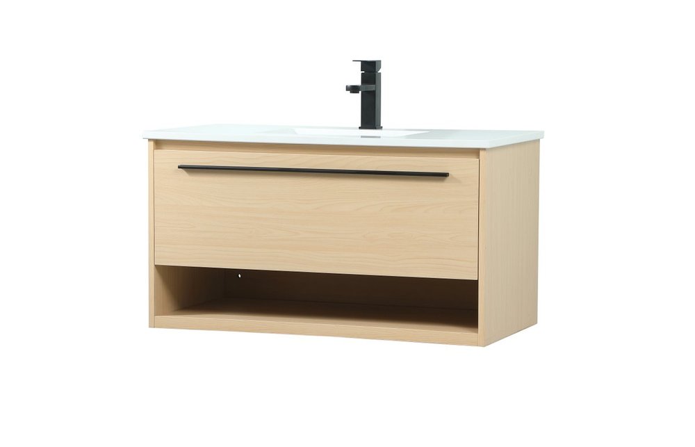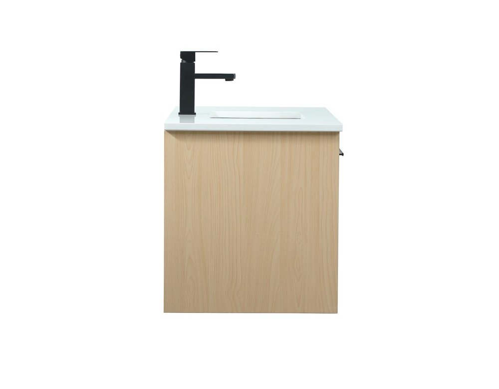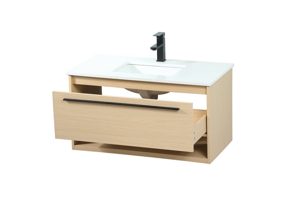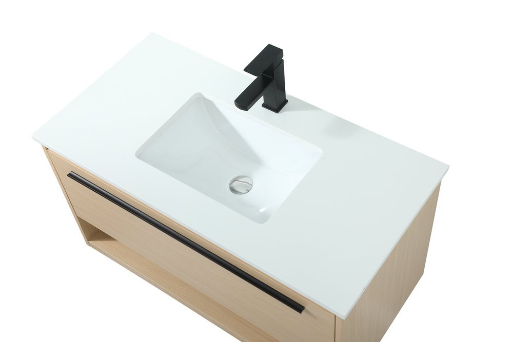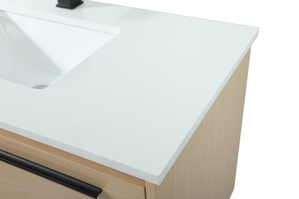 Comes with an undermount porcelain sink and a durable ivory white engineered marble stone top