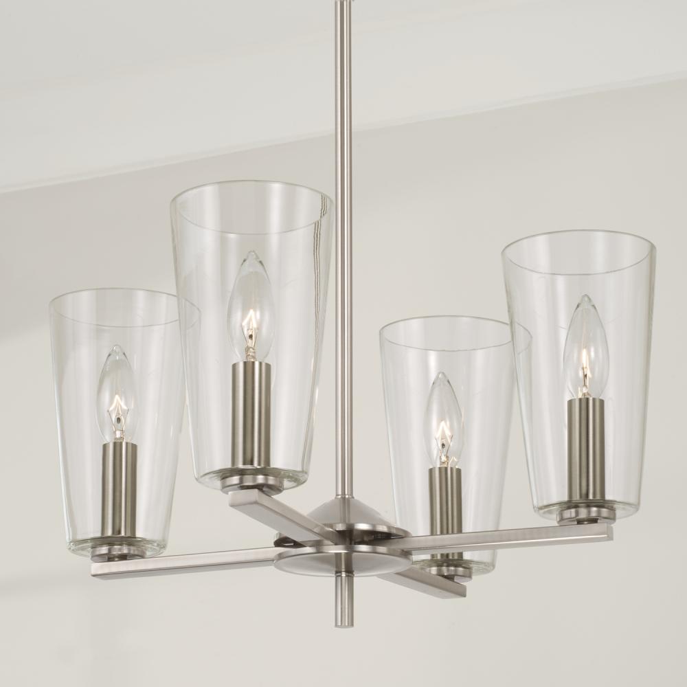 17.5"W x 21"H 4-Light Pendant Chandelier in Brushed Nickel with Clear Glass