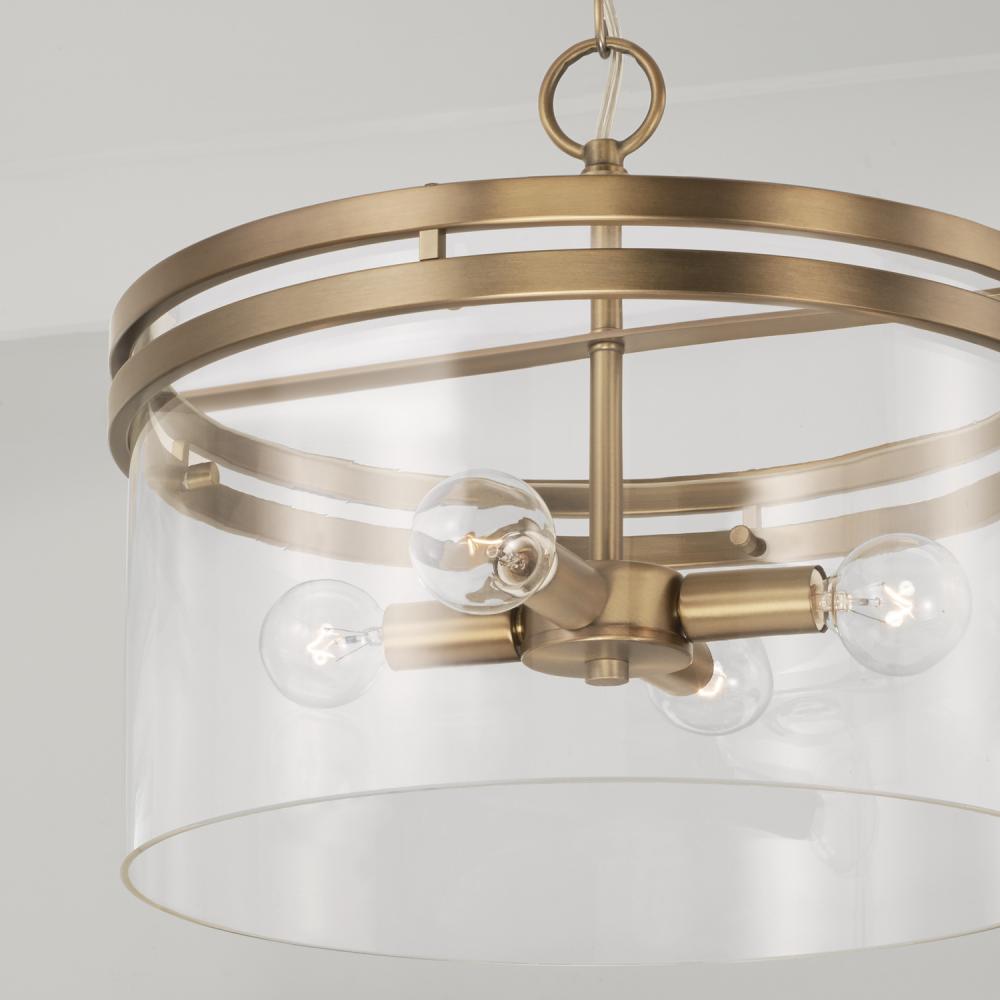 14.5"W x 12.75"H 4-Light Dual Mount Pendant or Semi-Flush in Aged Brass with Clear Glass