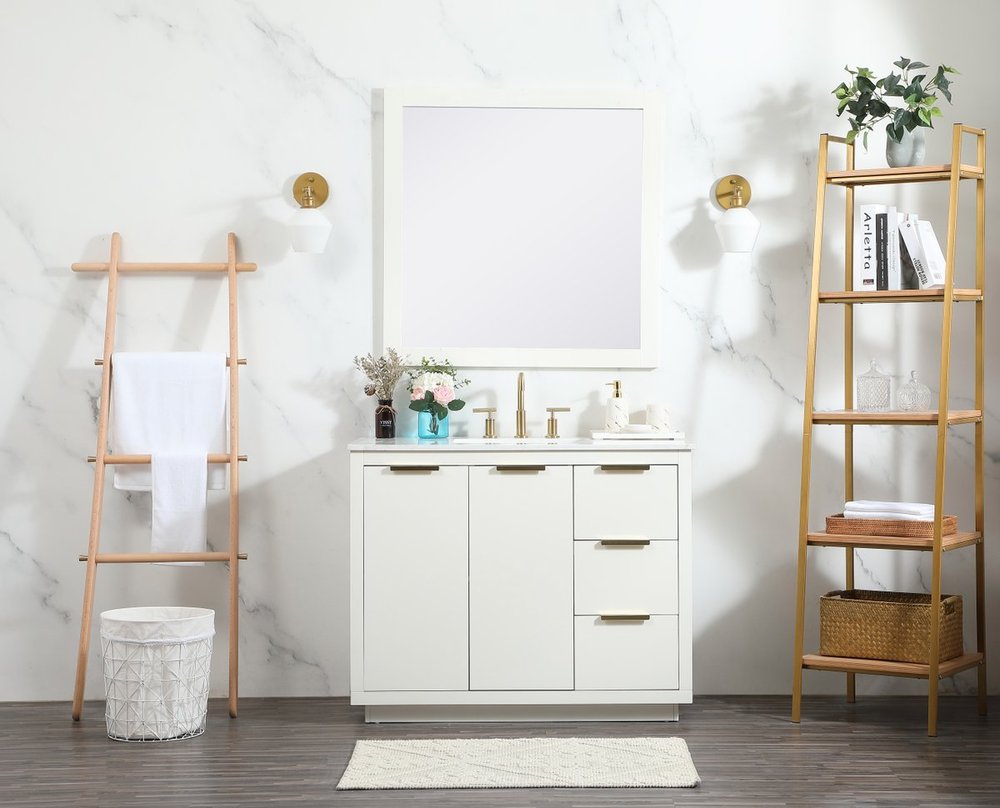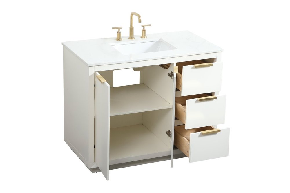 Comes with an undermount porcelain sink and a durable calacatta engineered marble stone top