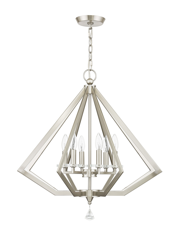 The Diamond Six Light Brushed Nickel Chandelier Lets You Explore A New Facet Of Your Design Sense. Shaped Like A Diamond, This Contemporary Six Light Chandelier Is Like Jewelry For Your Home'S Interior.