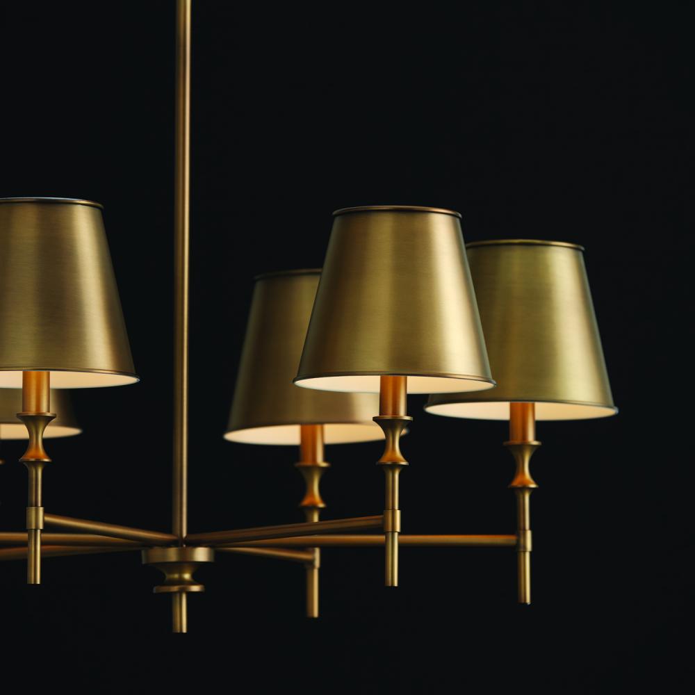 34"W x 27"H 6-Light Chandelier in Aged Brass with Metal Shade with White Interior