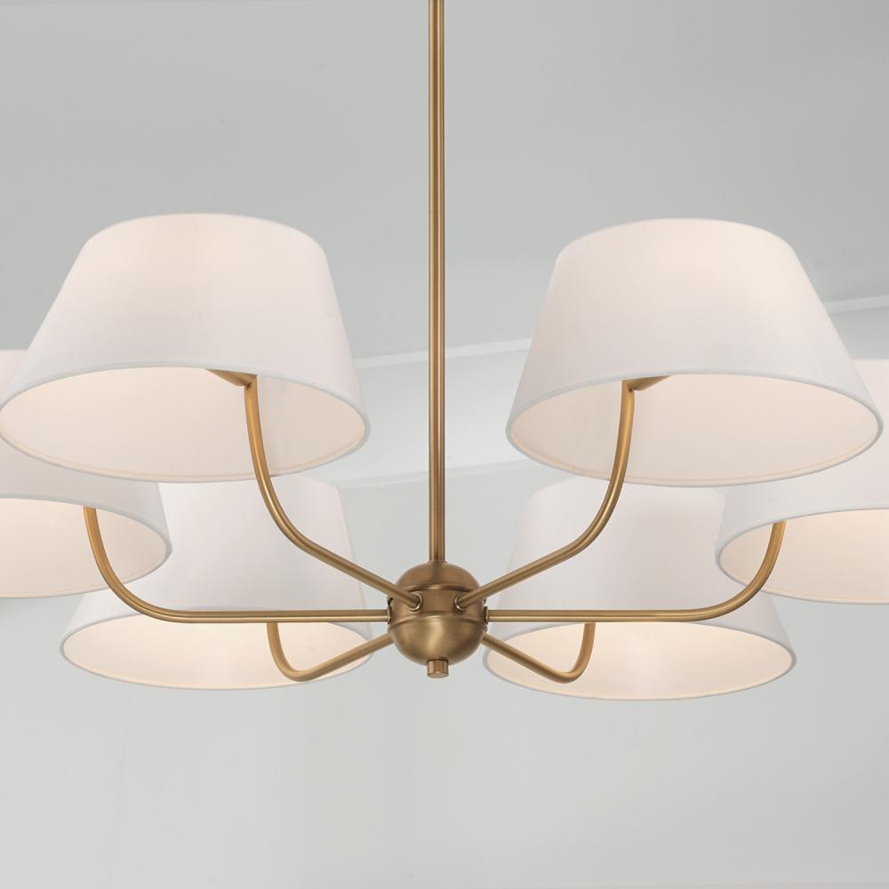 36"W x 21.25"H 6-Light Chandelier in Aged Brass with Offset White Fabric Shade
