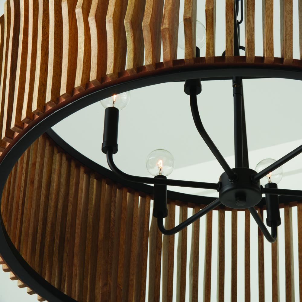 FINISH: A combination finish of light-stained mango wood and a powder-coated matte black metal finish.