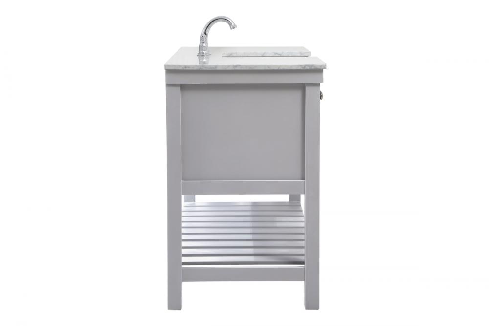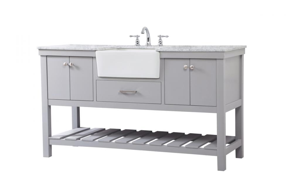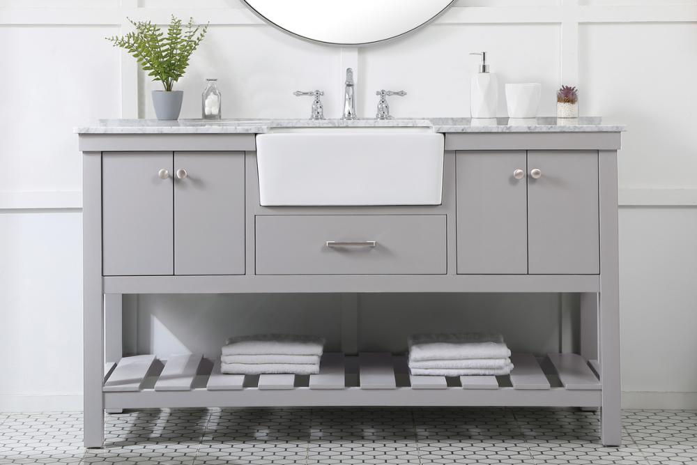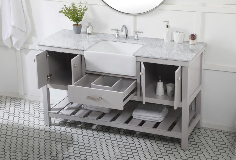 Comes with an apron porcelain sink and durable marble stone top in carrara white finish
