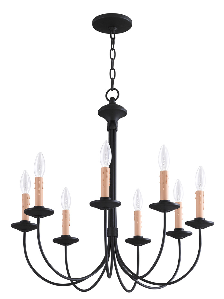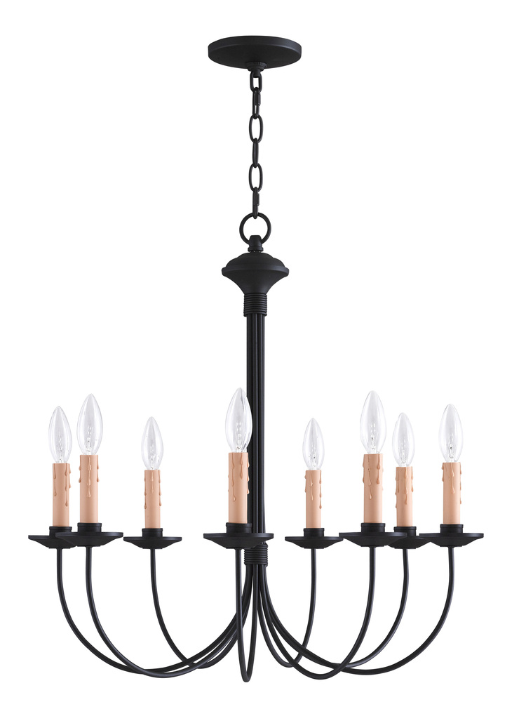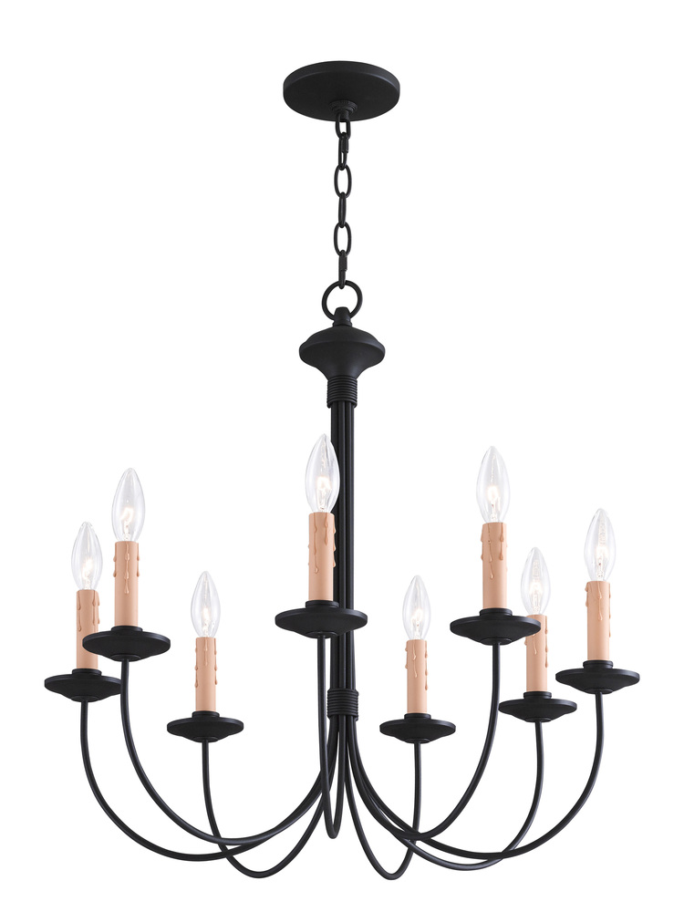 The Clean Design Of This Steel Construction Eight Light Chandelier Is Enhanced With A Black Finish. The Sweeping Arms Create A Slim Silhouette From Which The Candelabra Bulbs Emit Their Soft, Romantic Glow. Its Informal, Transitional Beauty Works Well With Many Room Decor Schemes.