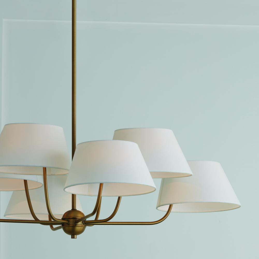 40"W x 21.5"H 8-Light Chandelier in Aged Brass with Offset White Fabric Shade
