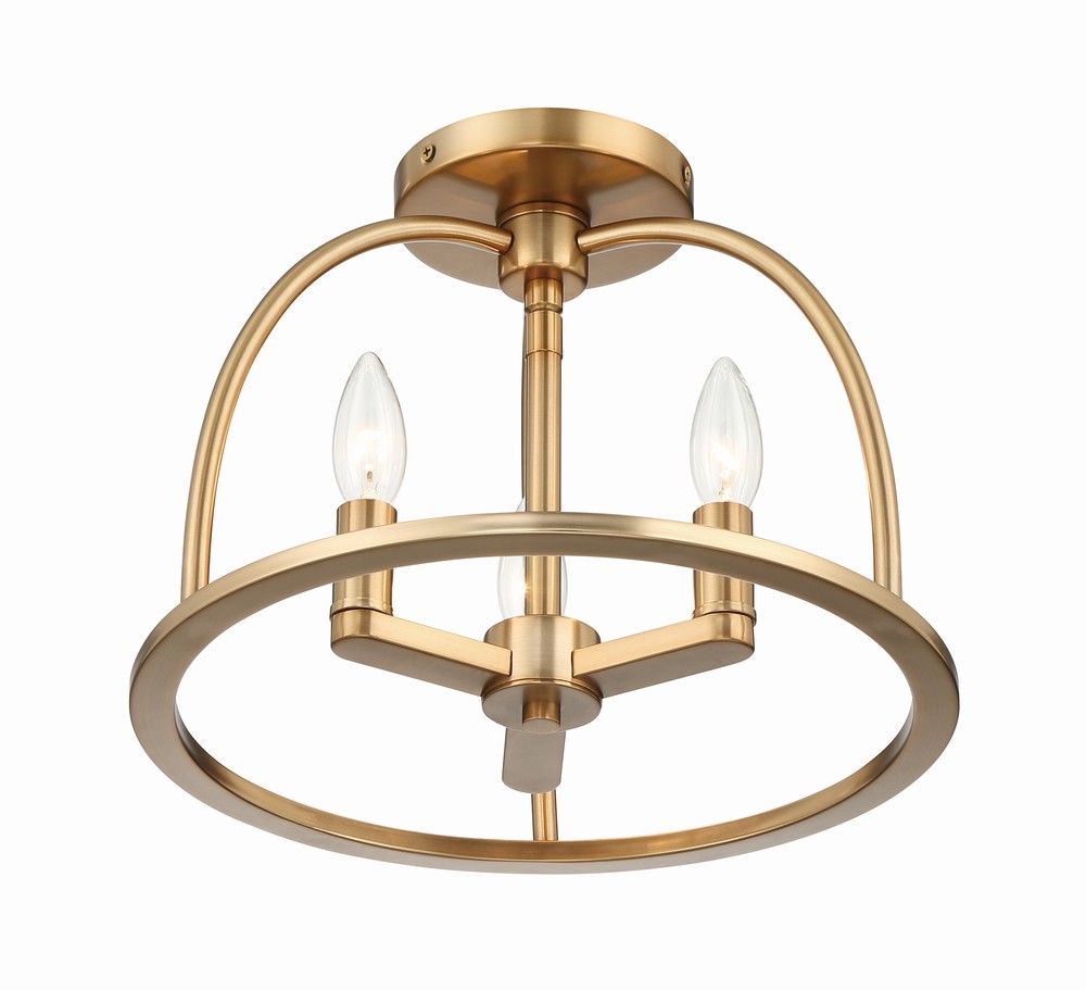 The Abbott ceiling mount presents a simple, streamlined shape and clean lines. The open-concept wagon-wheel frame features metal arches that surround an exposed set of candelabras. This versatile fixture can be used as a chandelier or ceiling mount. Available in two sizes and comes in vibrant gold or black finish.