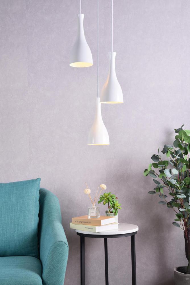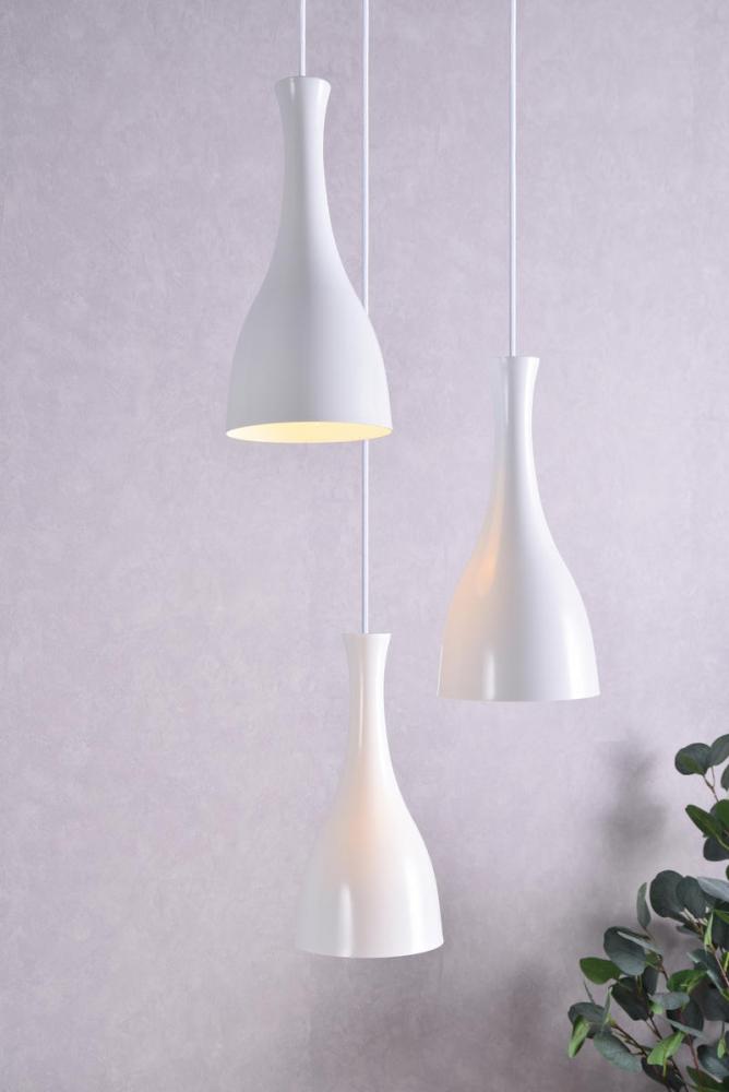 Take a chance on a fresh style with the sleek Aiken collection 3-lights pendant lamp in a white exterior and interior finish. The wine-bottle shaped shade adds a novel and playful personality combined with urbane charm that will surely create an exciting aesthetic in your dining room, living room, or entry way.