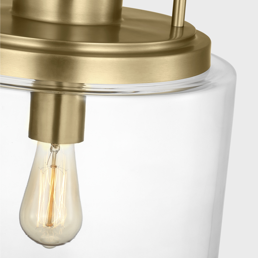 Crafted with Steel in a Satin Brass finish with clear glass shade