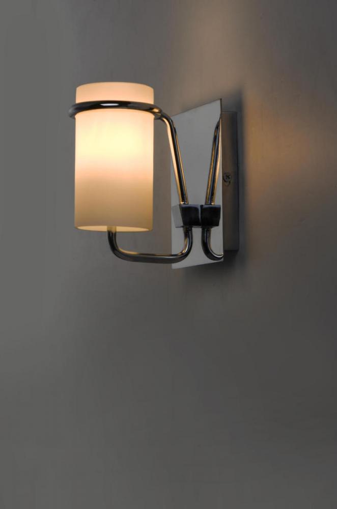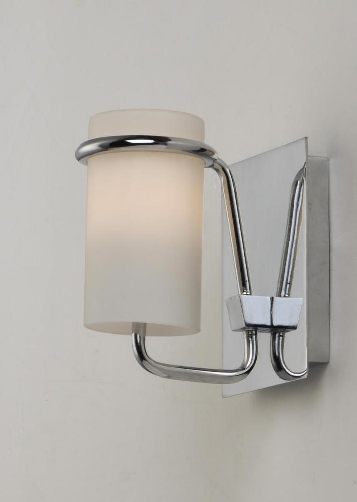 Satin White glass cylinders are cradled in castings of Polished Chrome to create this crisp and clean contemporary design. Each fixture is supplied with xenon lamps for good illumination. High style at an affordable price.