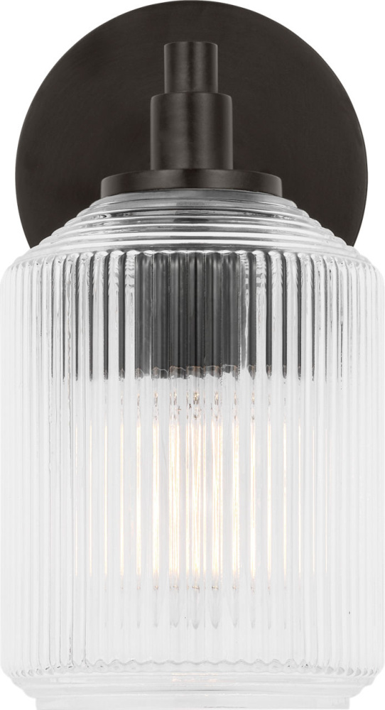 The Barstow 9" Vanity by Chapman & Myers captures the essence of vintage prismatic glass in a compact, refined form. Its ribbed clear shade features vertical and horizontal cuts that echo the precision of industrial craftsmanship, while the minimal metal frame keeps the silhouette clean and architectural. At 9", this fixture is ideal for smaller vanities or paired installations beside mirrors—where its sculptural clarity and polished detailing bring a sense of quiet sophistication to personal spaces.