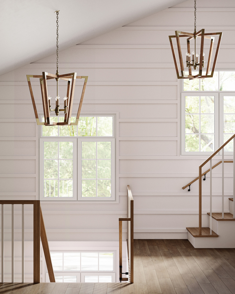 The Arts & Crafts movement has many beneficiaries in the world of design, and the Bastian Chandelier is one of them. Joined by a number of designs in this family of fixtures, the chandelier has wrought iron and wood finished in chestnut and brass that would have made the likes of Frank Lloyd Wright take notice. The aged feel of the brass clasping the wood spokes of the six-light fixture brings extra warmth to this chandelier.