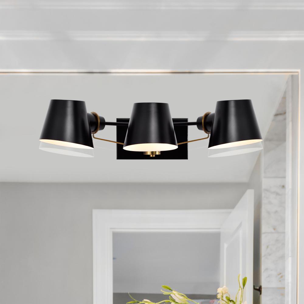 Baxter; 3 Light Vanity; Black with Burnished Brass