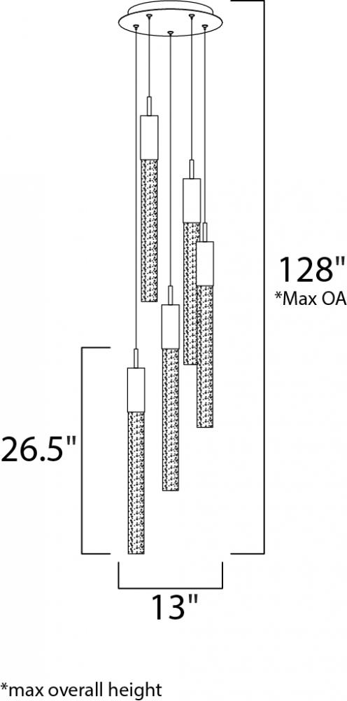 Our ever popular collection has grown up. Large scale fonts of clear bubble glass are suspended from Polished Chrome supports with no visible screws. Top of the line LED modules illuminate the glass from top to bottom with excellent color rendering.