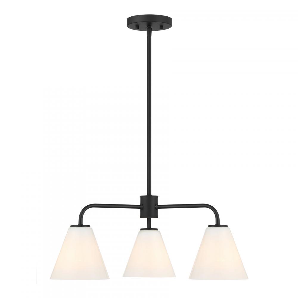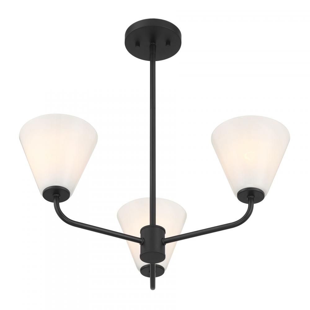 This Savoy House Blair 3-light chandelier is oh so versatile! It can be installed with the lights facing up or down, making it perfect for meeting every lighting need. Slender, sleek arms are finished in Matte Black and topped with shades of spectacularly swirling strie glass. Blair is 24" in width and has an adjustable height ranging from 9" to 63". Uses three standard size bulbs of up to 60 watts per bulb. Bulbs not included. Comes with four 12" downrods and one 6" downrod.