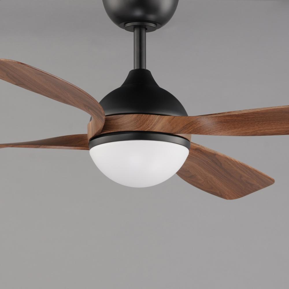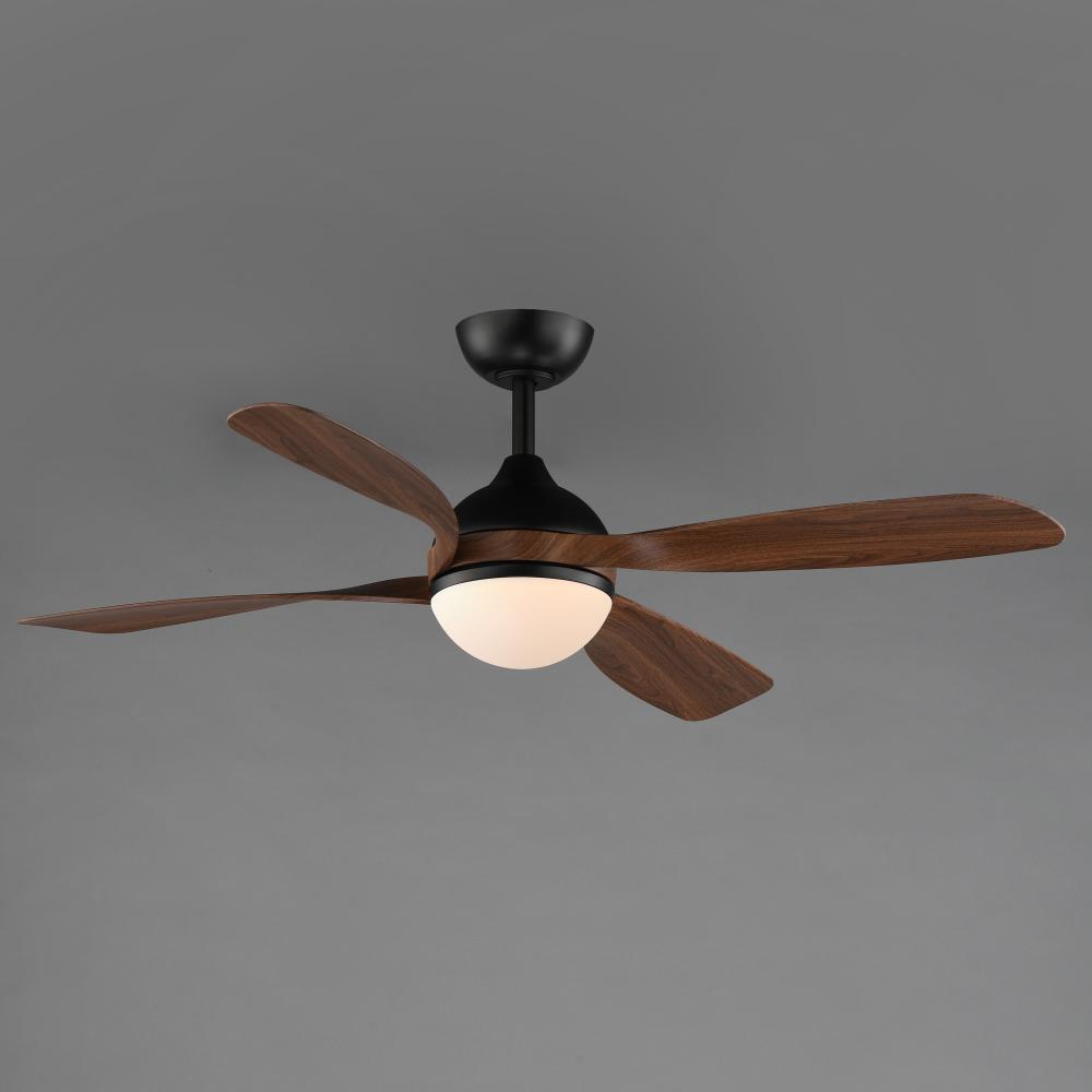 Modern and chic, the Bola collection elevates the standard fan with its beautifully balanced design. A sleek globe frame seamlessly separates the top DC motor housing from the lower LED light kit, while gracefully curved solid wood blades add a touch of na