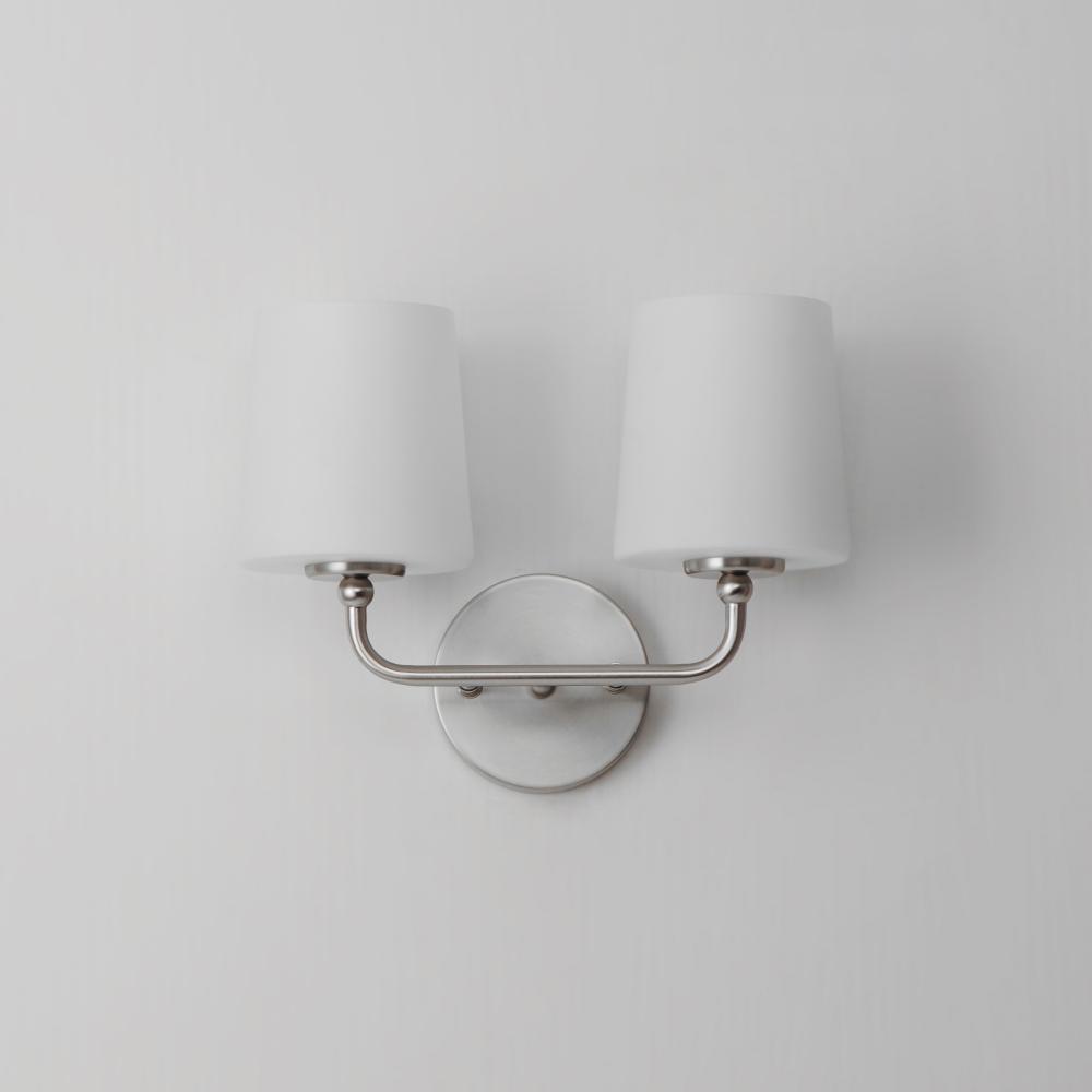 Understated elegance and convenience in its design, the simple curved arms of the Bristol collection outstretch in elongated proportions that terminate at a tapered Satin White glass shade. Designed to emulate a traditional fabric shade, the material being