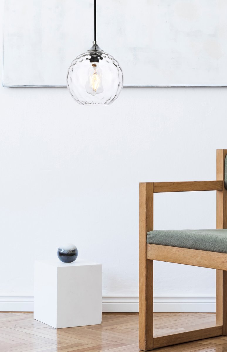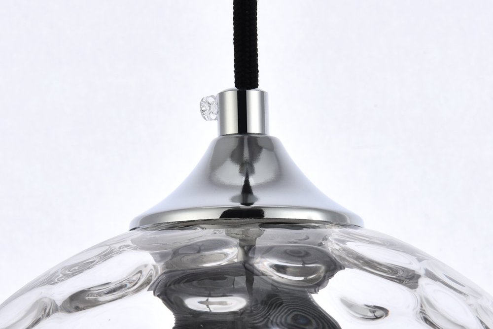 The Cashel Collection pendant light will illuminate any space. This piece comes in 3 lengths--- 6in, 8in, or 10in. Available in a brass or chrome finish this will look great in the living room, foyer, or bedroom. This product is dimmable and requires one E26 socket. Light bulbs not included.
