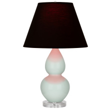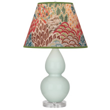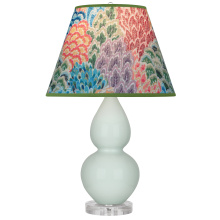 Celadon Glazed Ceramic with Lucite Base Small Double Gourd Accent Lamp with Tea Green Fabric Shade with Taupe Lining - Our Double Gourd collection features a simple but gracefully curving silhouette. Available in a wide array of vibrant colors and several different base finishes.