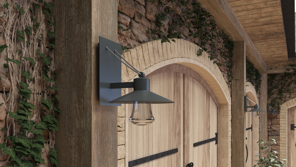 Conical shades finished in Architectural Bronze appear to be suspended by its stainless steel cable. Concealed inside these shades is a high powered COB LED which shines into a heavy Clear glass font. The bottom of theses fonts have an additional thickness
