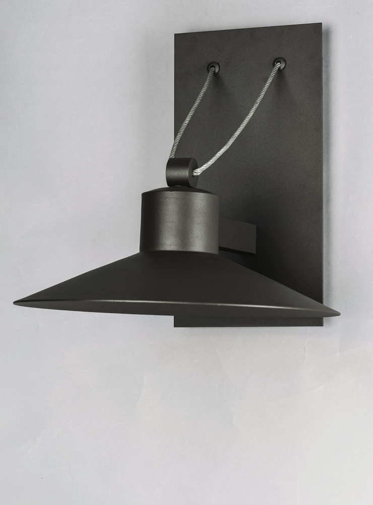 Conical shades finished in Architectural Bronze appear to be suspended by its stainless steel cable. Concealed inside these shades is a high powered COB LED which shines into a heavy Clear glass font. The bottom of theses fonts have an additional thickness