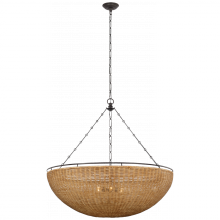 Clovis Grande Chandelier in Polished Nickel and Natural Wicker