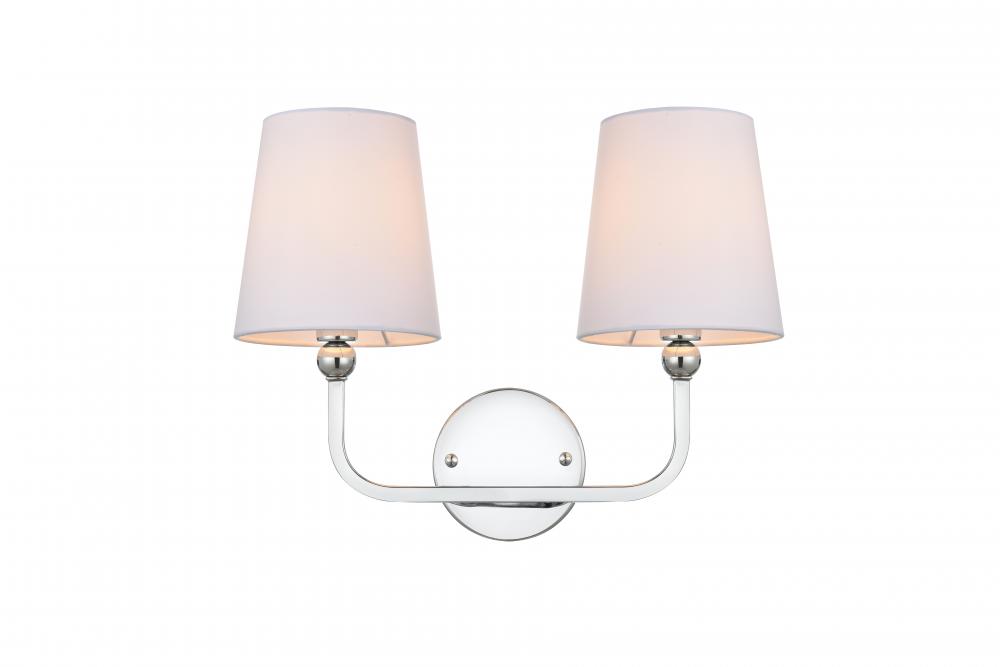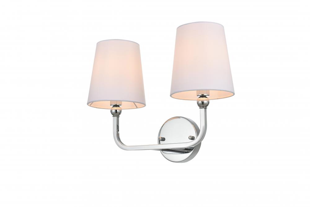 A modern twist on a traditional design, this vanity light is perfect for sprucing up your bathroom. Rated for use in damp locations, this iron fixture features a round backplate, curved arms, and fabric shade accents. Completely versatile, you can place this wall light as an uplight or downlight. Rated for use in damp locations, this will work perfectly over a vanity in your bathroom.