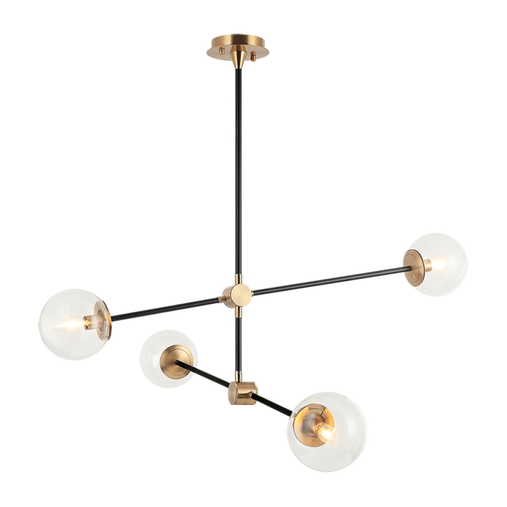 Cosmic is arranged with long, sleek, black rotatable rods, paired with Aged Gold Brass finish details. This collection is available in 3 sizes in either Clear or Opal glass to provide a stunning yet minimalistic look. The creativity of this series adds a unique detail to any space.
