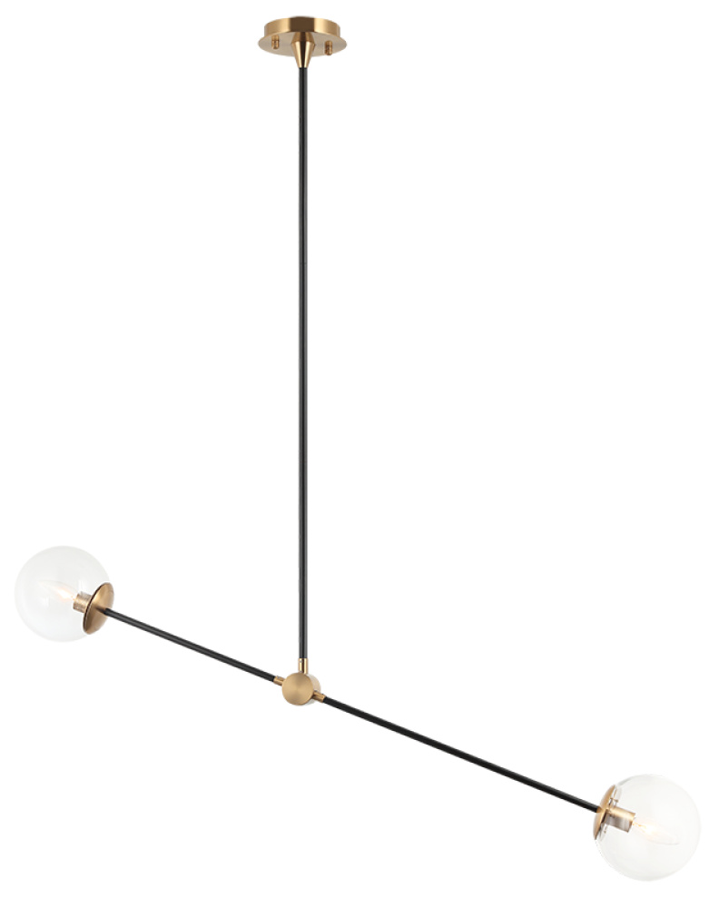 Cosmic is arranged with long, sleek, black slidable rods, paired with Aged Gold Brass finish details.This collection is available in 2 sizes in either Clear or Opal glass to provide a stunning yet minimalistic look.The creativity of this series adds a unique detail to any space.