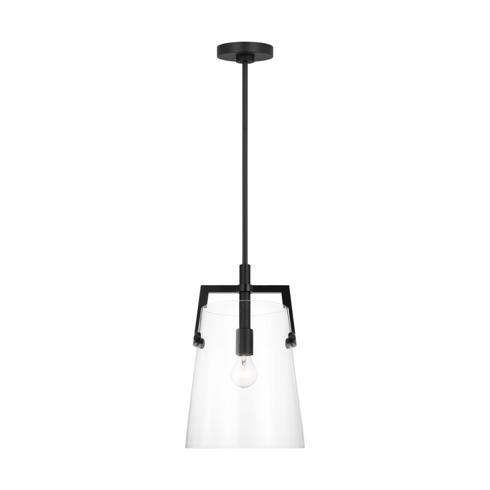 Crafted with Steel in a Midnight Black finish with clear glass shade