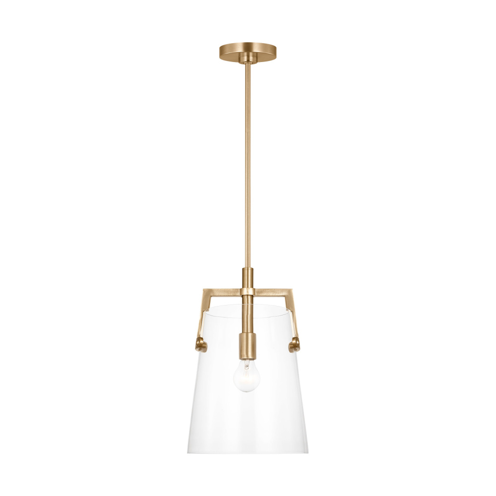 Crafted with Steel in a Satin Brass finish with clear glass shade