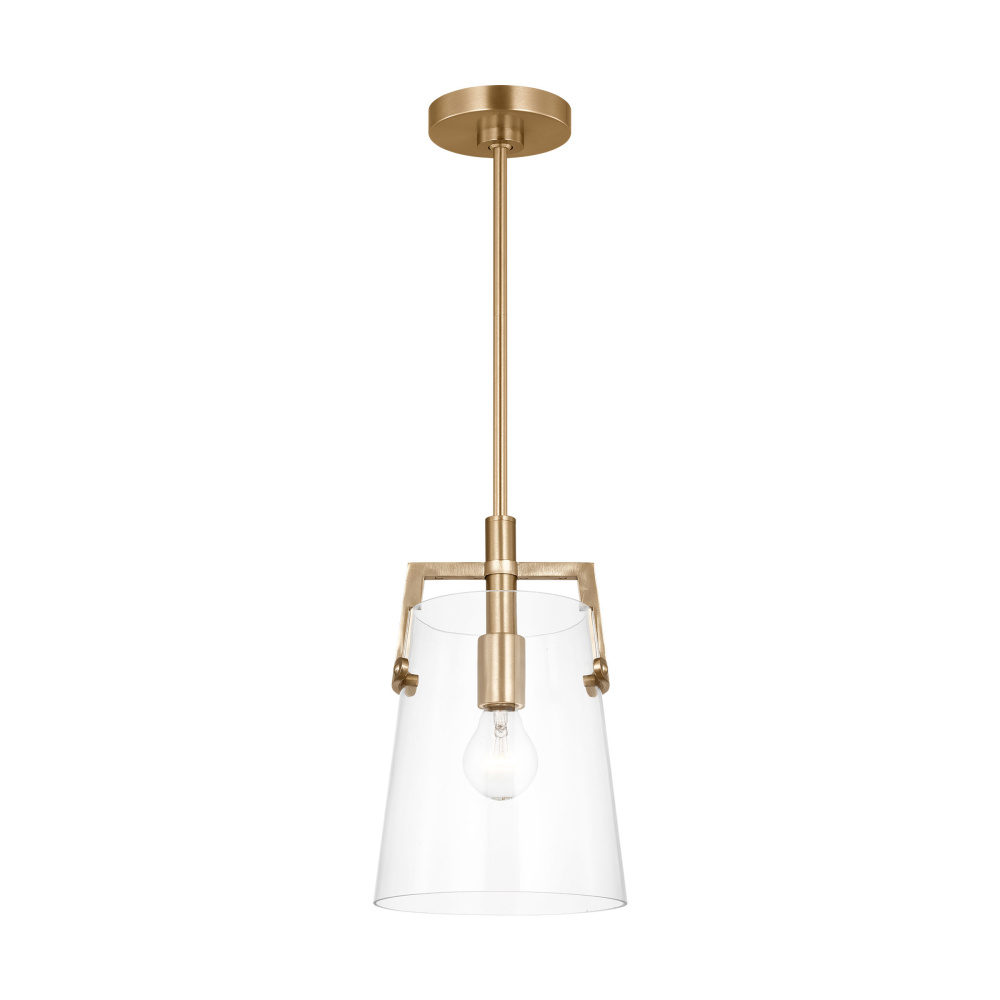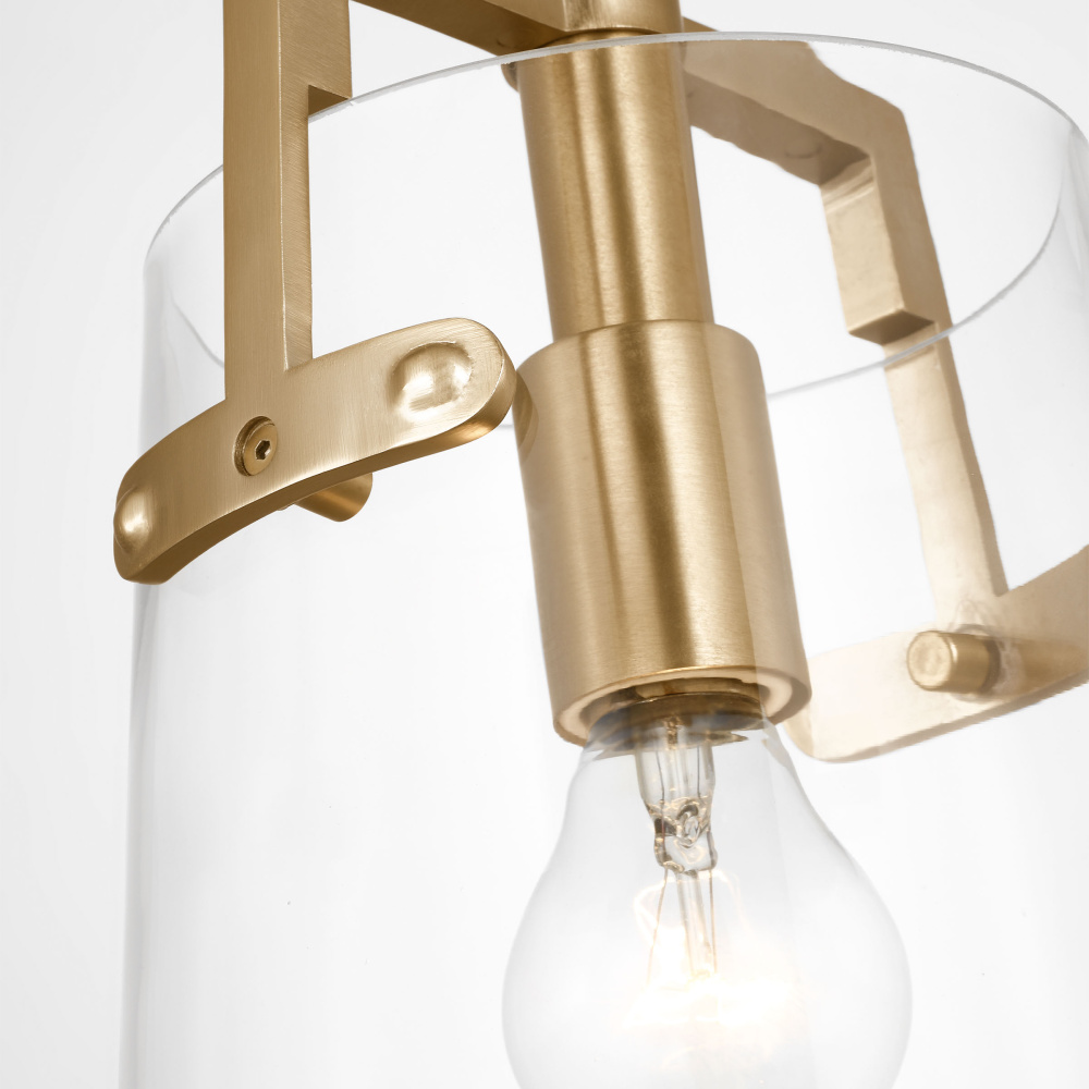 Crafted with Steel in a Satin Brass finish with clear glass shade
