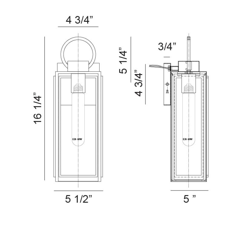 This exterior wall light features a rectangular design with a sturdy Matte Black metal frame and clear glass panels, allowing the bulb to be fully visible. The clear glass gives it a clean, modern look while its classic lantern shape adds a touch of elegance while still being suitable for contemporary settings. The clear glass and open design work well to showcase decorative filament bulbs, adding warmth and character to the light.