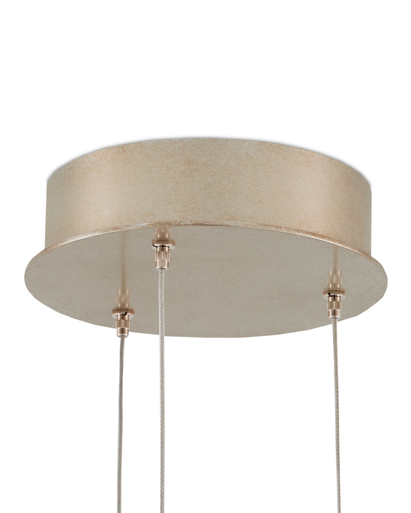 When a soft glow is desired, milk glass is one of the best materials to diffuse illumination. Our Daze 3-Light Multi-Drop Pendant is made of articulated panels of white milk glass that are joined together by ribs of metal in an antique brass finish. This brass and white multi-drop pendant will turn luminous when it is switched on. The canopy of this piece is luminous in a painted silver finish. This fixture is among Currey & Company's multi-drop pendant collection, which includes multiple configurations.