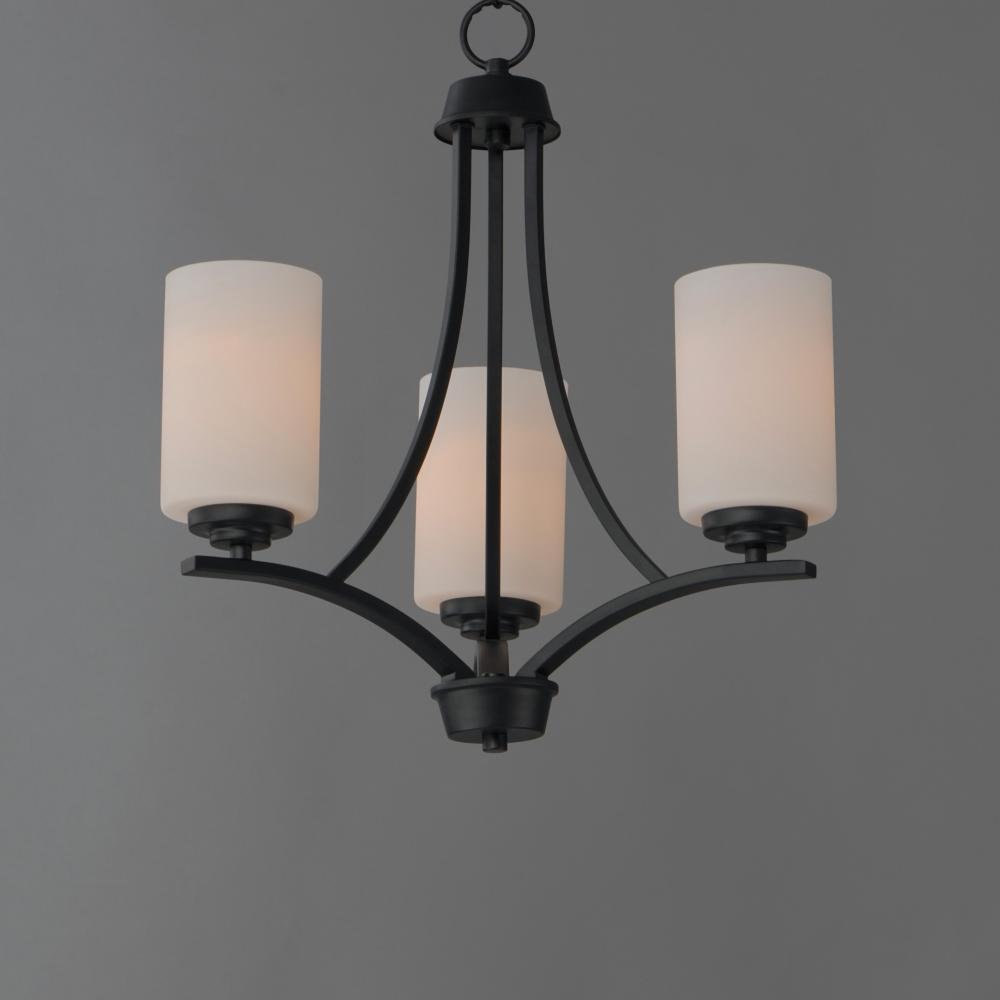 Low sloping arms of rectilinear tubing is finished in a variety of options that include Satin Nickel, Oil Rubbed Bronze, Matte Black, and a contemporary Satin Brass finish. Tall, cylindrical Satin White glass shades soften the light source within. Offered