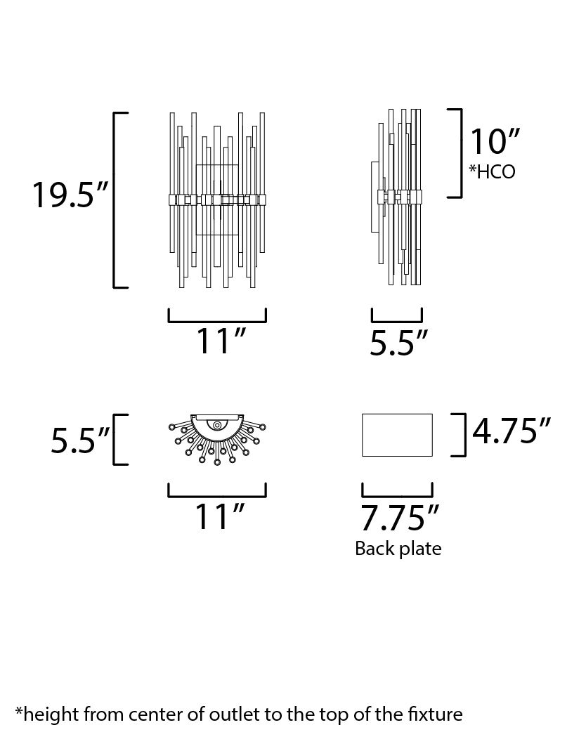 The composition of Clear glass rods are elegantly supported by thin radial arms of staggered lengths to create an iridescent motif that is truly Divine. Finished in Polished Nickel or Heritage Brass, the simplicity of this design delivers a crisp lighting