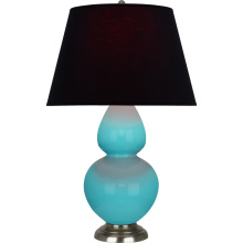 Egg Blue Glazed Ceramic with Antique Silver Finished Accents Double Gourd Table Lamp with Pearl Dupioni Fabric Shade - Our Double Gourd collection features a simple but gracefully curving silhouette. Available in a wide array of vibrant colors and several different base finishes.