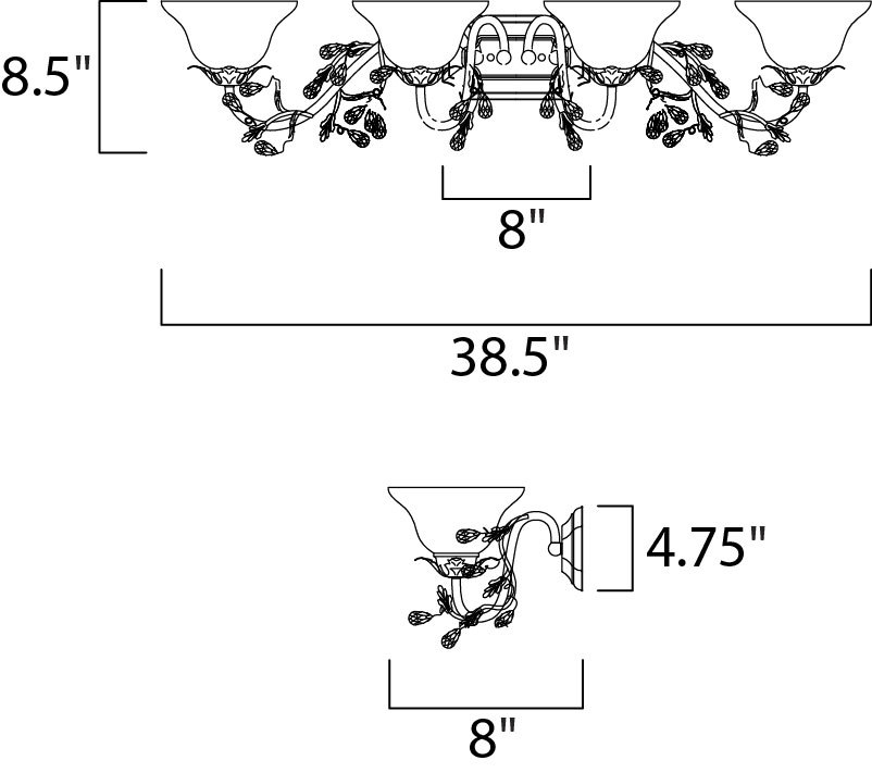 One of our most popular collections, Elegante combines lighting with decorating. Delicate leaves and crystals top the wrap-around vines. Offered in Etruscan Gold or Oil Rubbed Bronze.