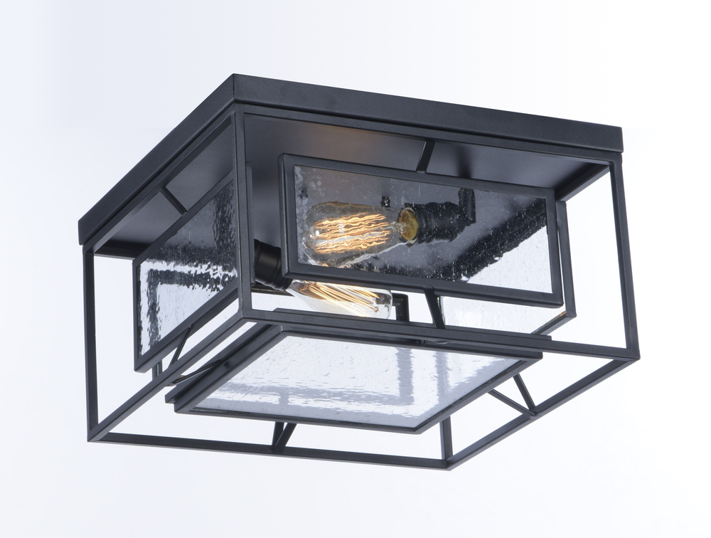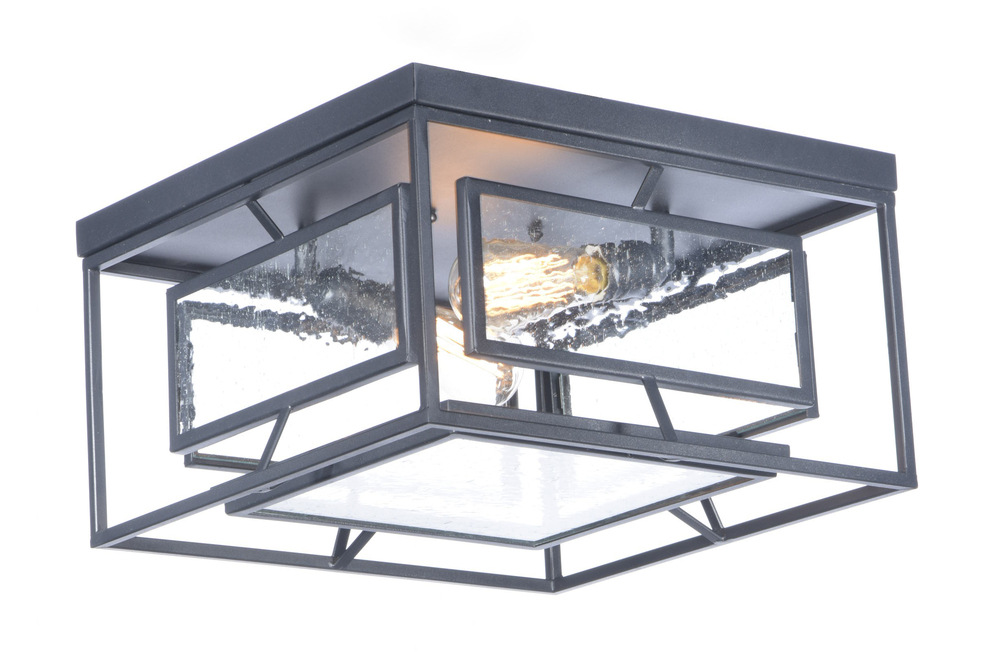 Geometric metal frames finished in Black support panes of clear Seedy glass, provides for a refined restoration look. Add vintage bulbs (not included) to complete the authentic feel of this design.